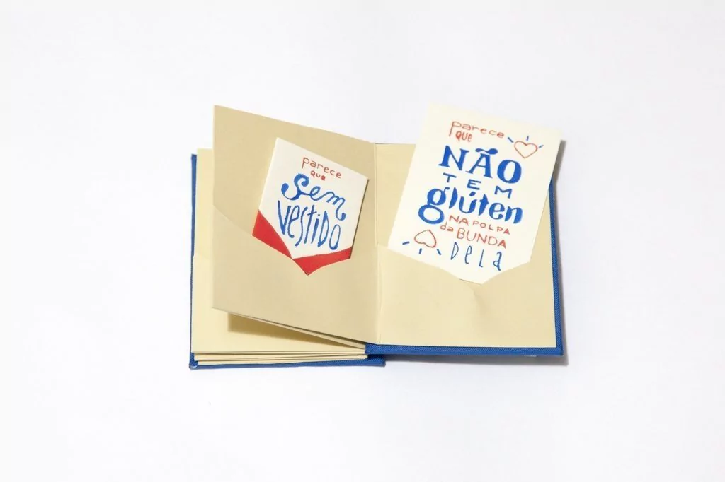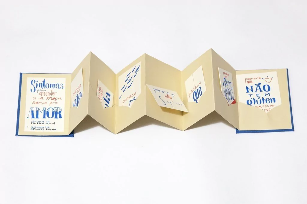 O abridor é um invento que serve para abrir corações. Um brinquedo feito de palavras e papel. O projeto gráfico, quase uma miniatura, reforça essa ideia, trazendo em sua interatividade e texturas, memórias sensoriais de leveza. A impressão em risografia e os papéis especiais garantem que a caligrafia feita à mão mantenha seu charme gestual.