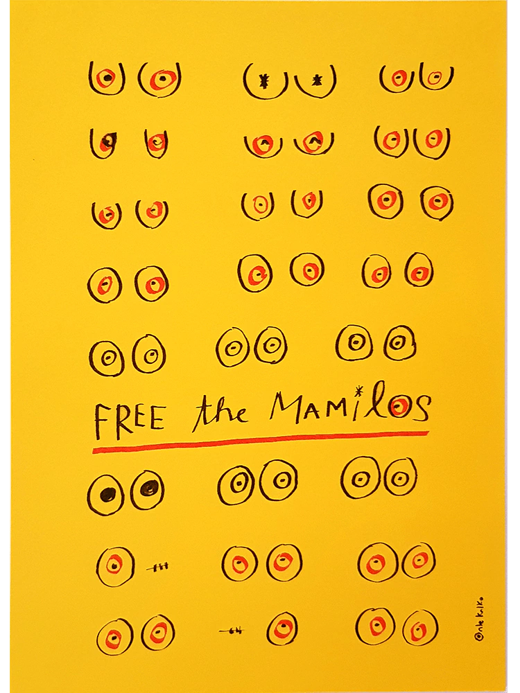 Os mamilos são seus e você faz deles o que você quiser. Pôster impresso em risografia no tamanho A4 (29,7 x 21 cm).