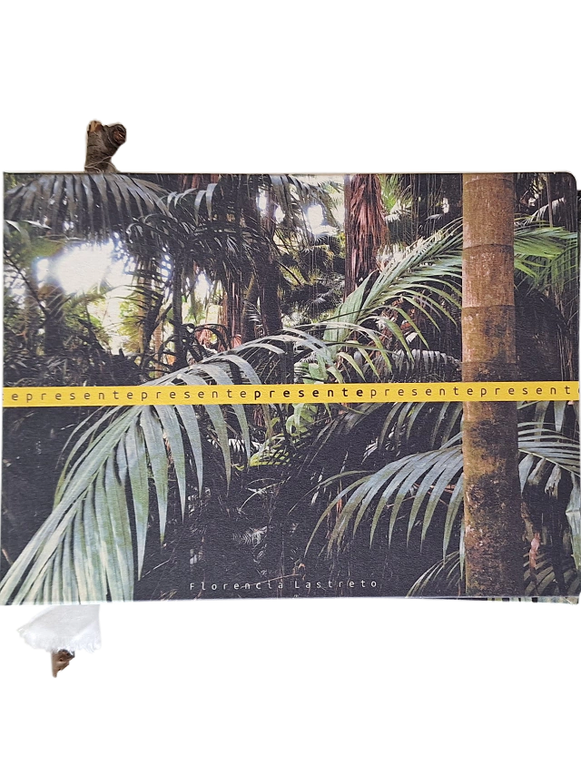 Impressa em jato de tinta, a publicação vem acompanhada por uma impressão em serigrafia sobre tecido em cor dourada que representa o passo do tempo, sujeito por um galho de madeira.